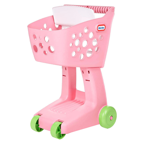 Little Tikes Pink Nesting Shopping Cart is a kid's shopping cart with large basket to hold play food and toys with foldable seat that fits 12" doll or plush - Cart x 1