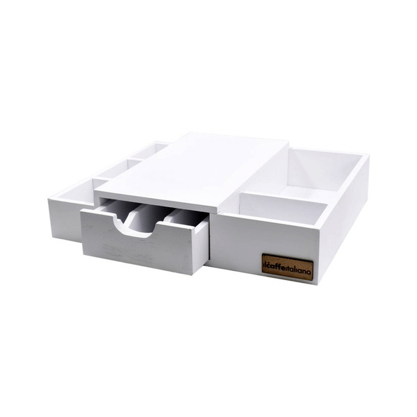 The perfect solution to store Nespresso coffee capsules conveniently arranged Large capacity & compact design Capsules can easily be taken out and are simple to refill Comes with a tissue dispenser (c.s.e.04.w)