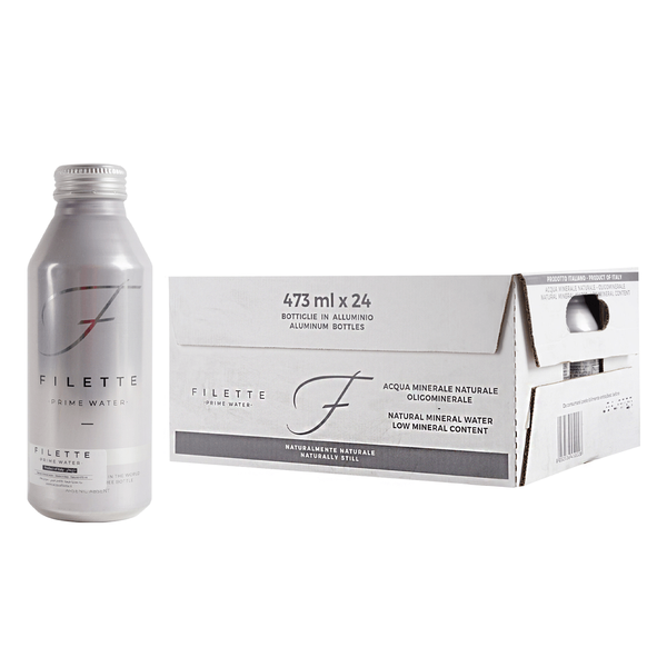 Acqua Filette, one of Italy’s purest waters has an astonishing low level of mineral contents. Aluminium Bottle - 24 x 473 ml