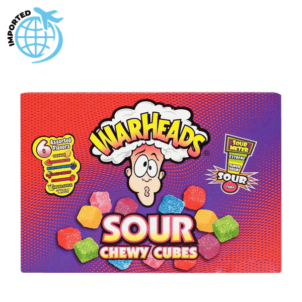 Warheads Sour Chewy Cubes Candy is the perfect blend of sour and sweet. Each contains six sour flavors which include green apple, blue raspberry, strawberry, watermelon, orange and black cherry - Bag 113 gm