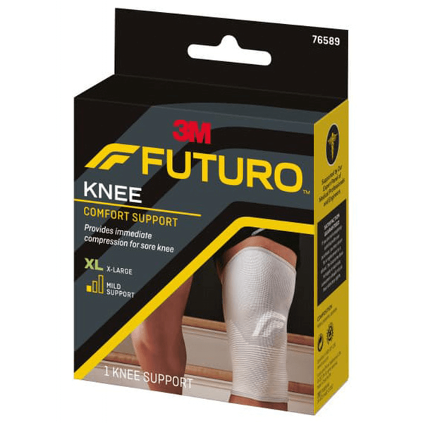 Four-way stretch and contoured design conforms to your knee for comfort and mild support, breathable material for comfort, flexible fabric promotes a full range of motion, ideal for stiff, weak and injured knees - One knee support - Size: Extra Large