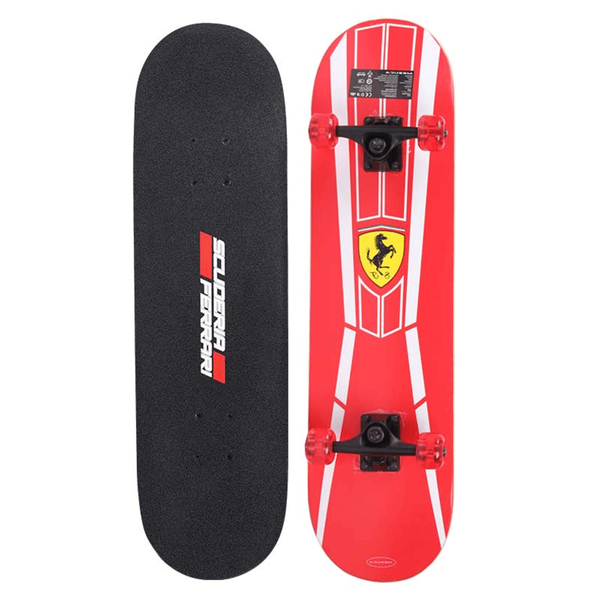 Ferrari Red/Black Carbon Steel Skateboard is made out of high-quality Chinese maple, aluminium and carbon steel. It has non-slip surface and strong grip with maximum support weight, model no: TO210408 - Skateboard x 1