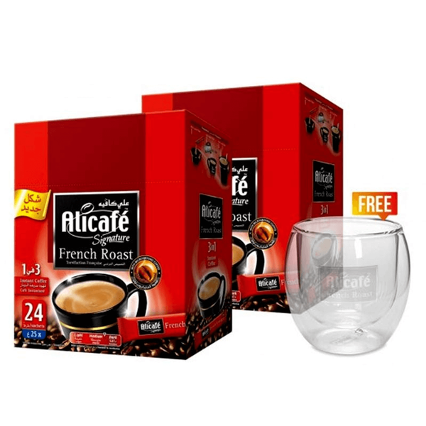 Enjoy the real coffee taste of Alicafé Signature French Roast, with no flavor added. With a blend of Arabica and Robusta beans, you will live an exceptional experience with every sip. Comes with a Free double wall glass - 2 x 24 Sachets + Free Cup