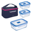 Material: Glass/Silicone, Capacity: 380 ml, 760 ml,, 1220ml, Microwave safe, leak-proof & fully tempered, Grocery Container. Model No: P4129