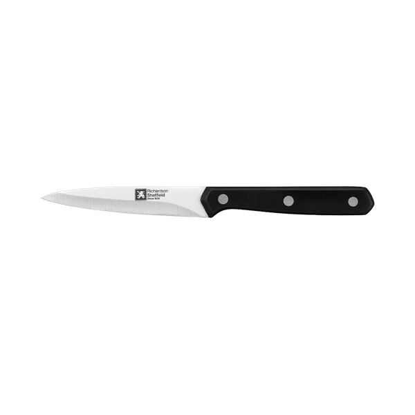 They are made of high-quality stainless steel, on the handles have polypropylene overlays. They have a perfect balancing and sharp sharpening. Dishwasher safe. It is used for slicing and peeling - 4.5 inch Model No: 180117