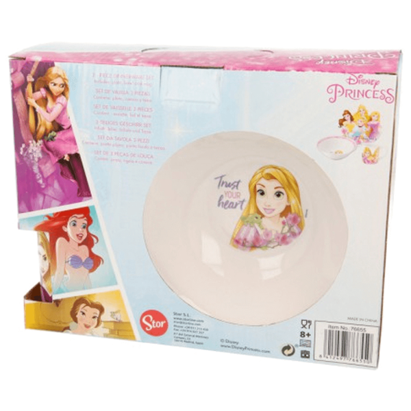 Snack set for children consist of plastic plate, bowl and cup decorated with disney princess characters - 3 pcs