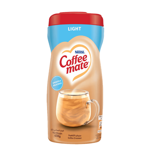 A non-dairy creamer designed to enhance your coffee experience with a rich, velvety flavor while offering a lighter option. This creamer contains 50% less fat than the original Coffee Mate creamer, making it suitable for those seeking to reduce their fat intake without compromising on taste - 450 gm