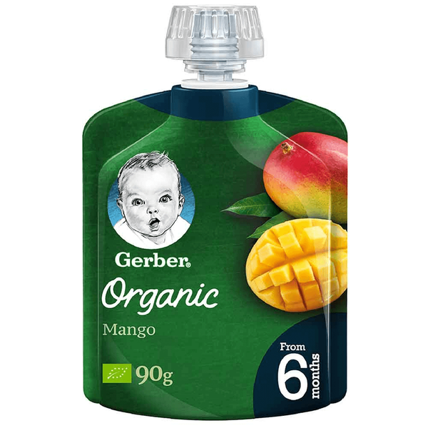 Gerber organic puree, a portion of nutritious and delicious baby food made from a mix of organic fruits to help introduce your little one to the goodness of fruits from 6 months - 90 gm