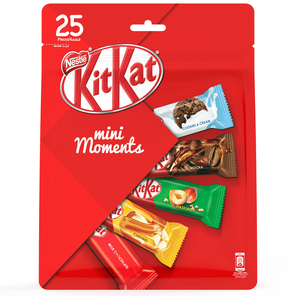 A unique mix of wafer fingers filled with rich ingredients, in different tastes. enjoy five different flavors in one pouch. enjoy the irresistible richness of the ingredients within each mini moment - 25 x 427.5 gm