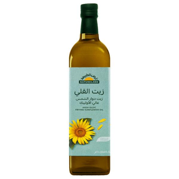 It is an organic product. Natureland Sunflower Frying Oil is produced from a special, hard to find, high oleic variety of sunflower seeds. This means that its oil is high in fatty acids which are more stable when heated - 1 L