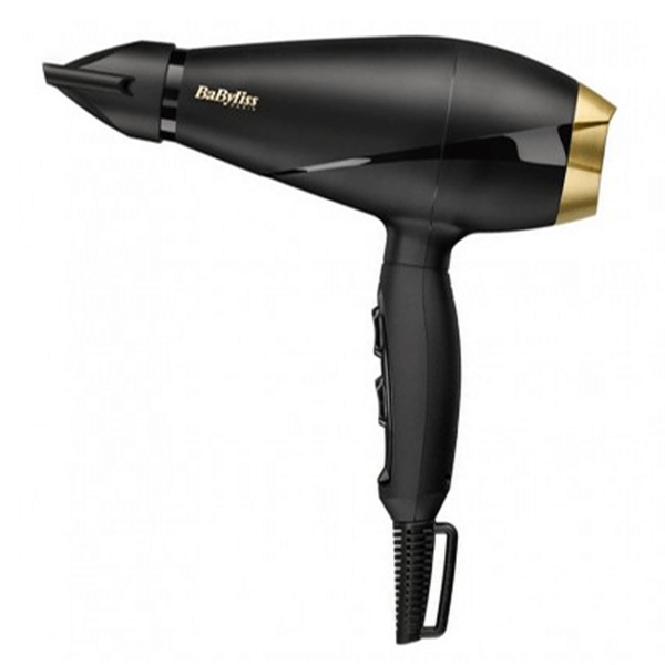 Salon AC motor with Italian Nozzle - 6 mm, 100 km/h airspeed with 2 heat settings, and 2-speed settings, Lockable cold shot, Salon cord length - 2.8 m - Black. Model No. BAB6704SDE