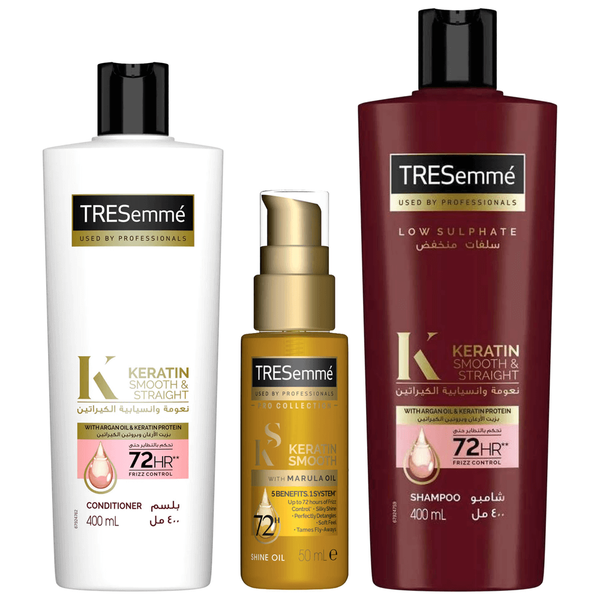 Set contains: Keratin Smooth & Straight Shampoo with Argan Oil - 400 ml + Free Keratin Smooth & Straight Conditioner with Argan Oil - 180 ml Keratin Smooth Hair Oil - 50 ml
