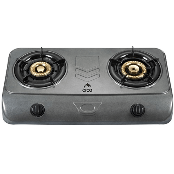 Easy to use, table top gas burner, stainless steel material, copper burner. 2 Gas Burners, Color: Black - Model No. HT-G-2090