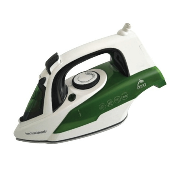Ironing clothes now gets better and smoother and easy to use, Orca steam iron, ceramic. Power: 2000W, Color: Green/White - Model No. OR-HG-5069