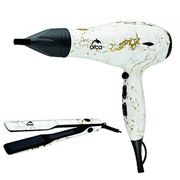 Set Includes: Professional Hair Dryer - 2000W. 2 speed setting. and 3 heat settings. Professional Hair Straightener - 230C. ceramic coating plate. Mini Hair Curling - 25W. 25 mm. Ceramic coating plate - Model No. OR-MARBLE SET