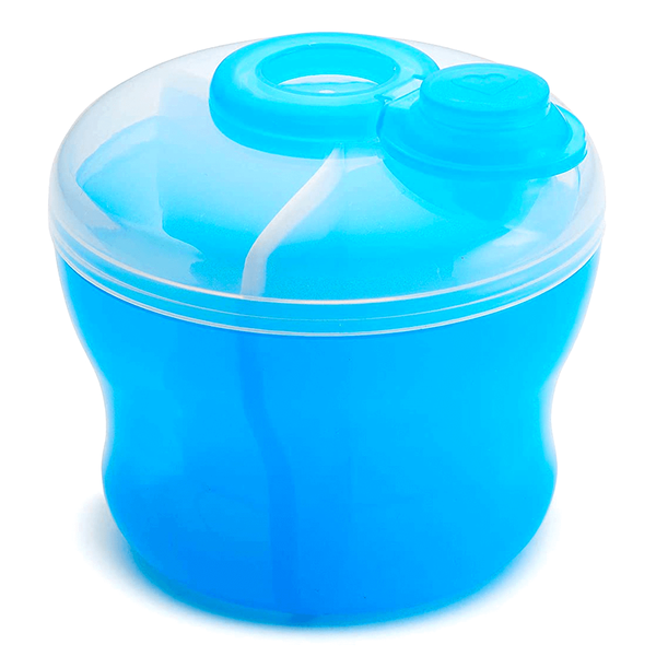 Infant formula dispenser suitable for use with all formula brands that is easy to dispense, with a snapping lid to keep formula secure from leaks - Blue