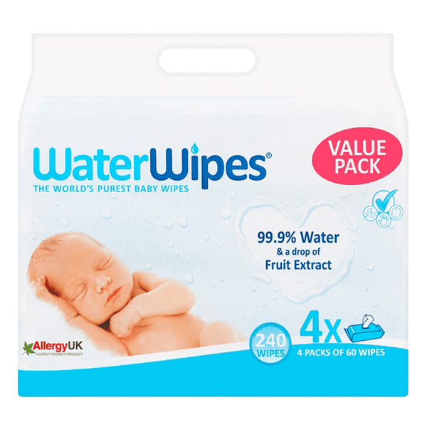 Fragrance free baby wipes. Chemical free, and contains 99.9%. Purified water with one drop of fruit extract. Suitable for sensitive newborn and premature baby's skin and well as growing toddlers - 4 x 60 Wipes