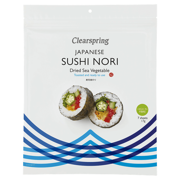 Clearspring sushi nori is ready toasted and can be used straight from the pack as a snack or for wrapping sush - 17 gm