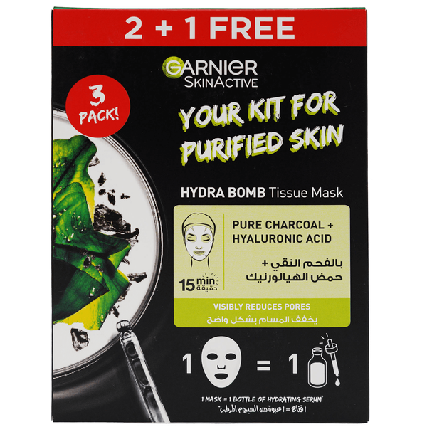 A tissue face mask formulated for enlarged pores and enriched with natural plant extracts & hyaluronic acid - 2 + 1 Free
