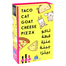 Each player places a card from their hand, face-up, while saying one of the following words: Taco!, Cat!, Goat!, Cheese!, Pizza! in player sequence. When the card matches the mantra just say - BOOM. Players: 2-8, Age: 8+, Time: 10-30 min.