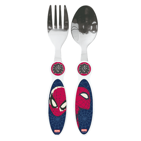Children's spoon and fork with a fun design that is hazard-free and can be used to avoid making a mess when eating