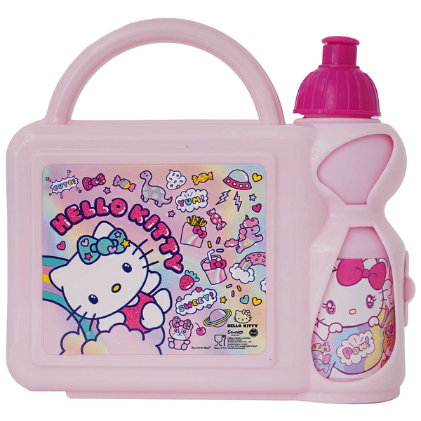 A combination of a children's lunch box and water bottle in one with a fun design that is made to contain their food and drink without making a mess - 20.9 x 19.5 cm + 350 ml