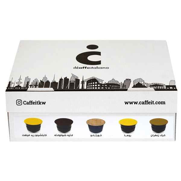 A box that is filled with delectable coffee capsules flavors starting from Karak Saffron, Roma, Cortado, Chocolate Latte, and Red Velvet - 40 Capsules