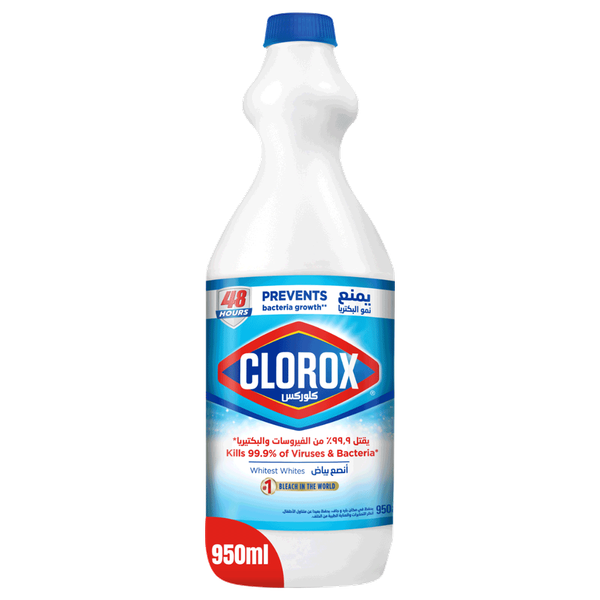 Clorox bleach is the world's most popular bleach brand, providing a complete household solution. Its powerful disinfecting properties allow it to kill 99.9% of viruses and bacteria in your home - 950 ml