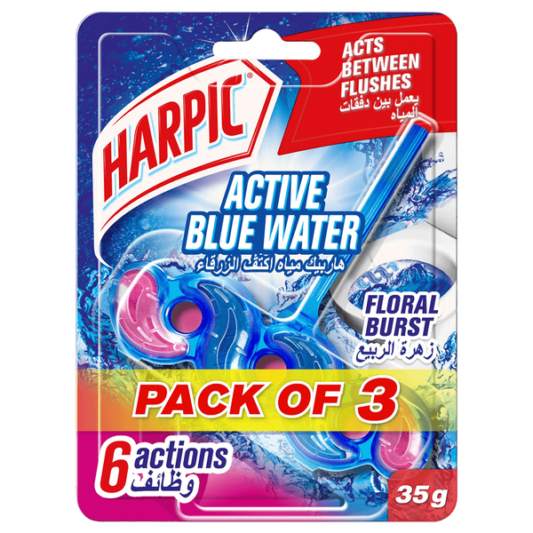 Harpic Active Fresh Toilet Cleaner Rim Block gives you a clean and shiny toilet with every use. It removes limescale, dirt and stains effectively. It gives out a floral burst fragrance that lasts up to 4 weeks - 3 x 35 gm