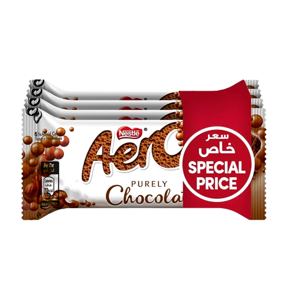A light, aerated texture, smooth bubbly milk chocolate, made in the best Cocoa farms. With its light eat and rich chocolate taste, AERO Milk chocolate bar offers you a guilt free indulgence and an uplifting relaxing moment - 4 x 36 gm