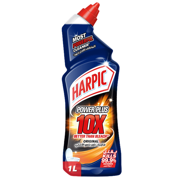Harpic Power Plus 10X Toilet Cleaner’s better & thicker formula gives you 10X better cleaning and leaves your toilet perfectly clean, shiny and disinfected. It removes all kinds of stains, leaving your bathroom with a pleasant pine fragrance - 1 L