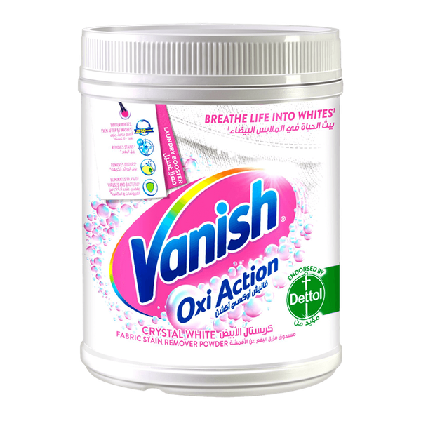 Vanish Oxi Action Crystal White Stain Remover Detergent Powder is designed to give amazing stain removal results and keep whites whiter even after 50 washes. Enjoy stain-free laundry with the special Oxi Action formula that penetrates and lifts the stains - 450 gm