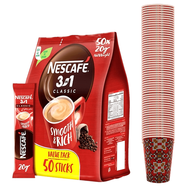 They are convenient single-serve packets that combine coffee, creamer, and sugar, providing a quick and delicious way to enjoy a creamy and sweet cup of coffee anytime, and anywhere - 50 Sachets + Free 60 Paper Cups