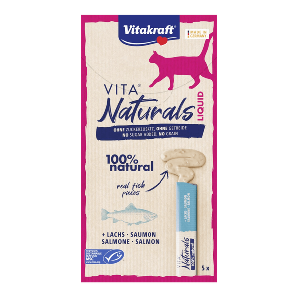 A liquid cat snack featuring salmon, provides cats with a flavorful and nutritious treat option that can be enjoyed as a standalone snack or added to meals - 75 gm