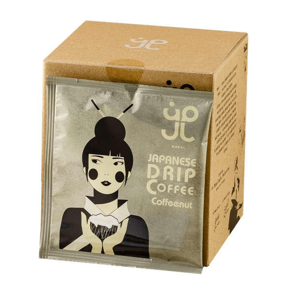 Japanese Drip Coffee with half the amount of caffeine and enriched with Bacopa Monnieri extract to boost concentration Flavored with Coconut Ingredients: Coffee, Bacopoa Monnieri Extract, Coconut Pieces, Coffeenut Flavor. 10 Bags
