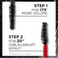 Infused with pro-keratin. 1- Apply mascara with the straight mascara brush, brushing from root to tip, for up to 17x more volume. 2- Apply mascara with the curved mascara brush, brushing from root to tip, for a 20° curl effect.