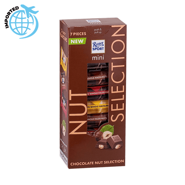 Contain 3 tasty flavors of mini chocolate bars of Hazelnut Dark Chocolate - 2 Pcs Hazelnut Milk Chocolate - 2 Pcs Hazelnut White Chocolate - 1 Pcs