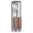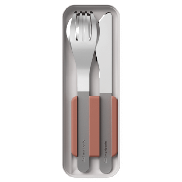 A set of stainless steel utensils for eating on the go, designed for durability.