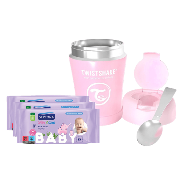 Hypoallergenic baby wipes for gentle cleansing, paired with an insulated food container to keep meals fresh and warm on the go – 60 Wipes + 4 x 350 ml