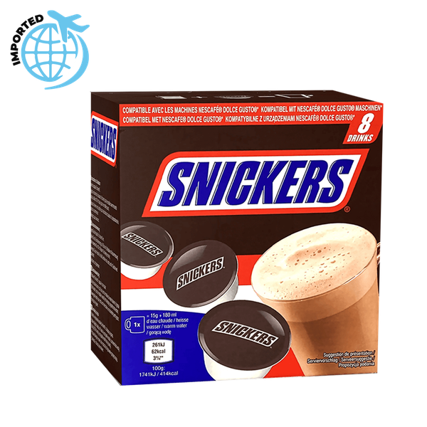 Capsules designed for use in coffee machines to make a hot chocolate drink with the familiar flavors of Snickers candy bars - 120 gm