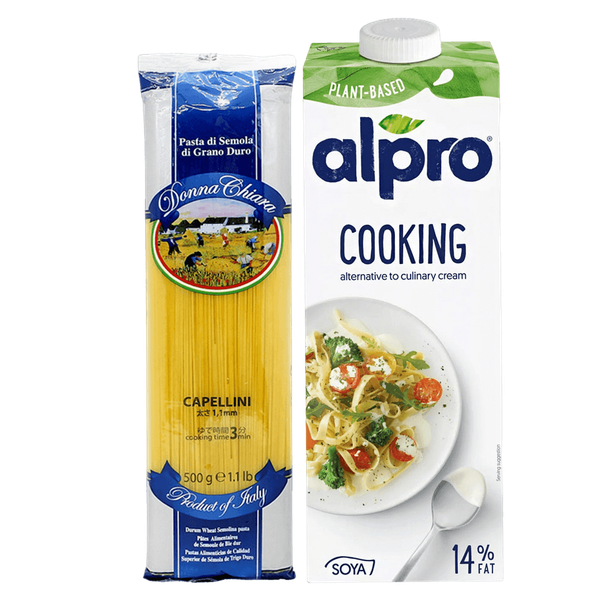 Set Includes: Donna Chiara Capellini Pasta (500 gm) - Alpro Soya Plant-Based Cooking Cream (250 ml)