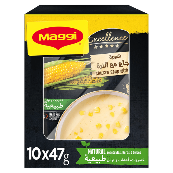 A delicious blend of chicken and corn in a soup mix, providing a comforting and an amazing meal option - 10 x 47 gm