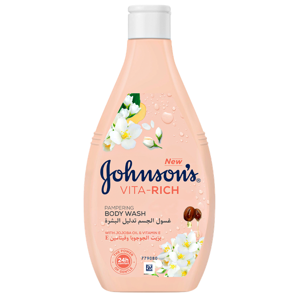 It's infused with jojoba oil and vitamin E, known for their hydrating and skin-nourishing properties. The body wash also features a distinctive fragrance blend of jasmine, white flowers, musk, and sandalwood. This formula is clinically proven to cleanse while leaving the skin feeling hydrated and soft - 400 ml