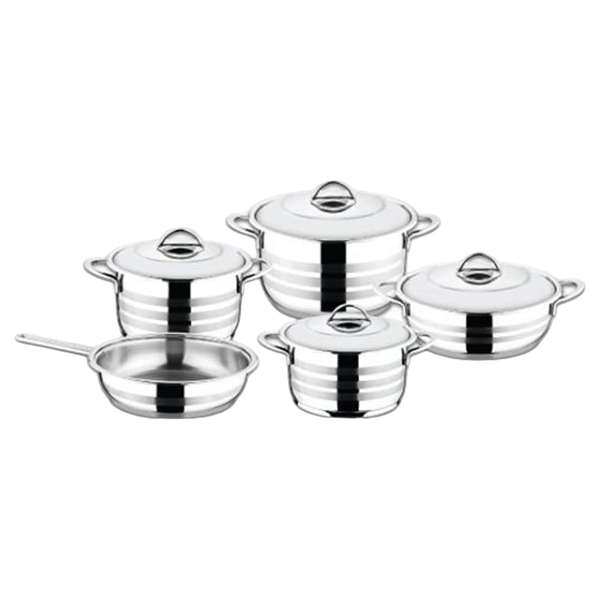 This set contains: 16 cm Casserole Pot, 20 cm Casserole Pot, 22 cm Casserole Pot, 24 cm Low Casserole Pot, 24 cm Frying Pan, Lids ( 4 Pcs ) - Set of 10