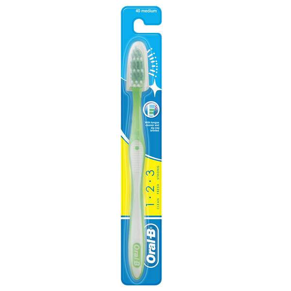 It aims to provide a comprehensive clean. It features end-rounded bristles that are gentle on gums, a cup-shaped design to clean between teeth effectively, and a molded tongue cleaner for freshening breath.