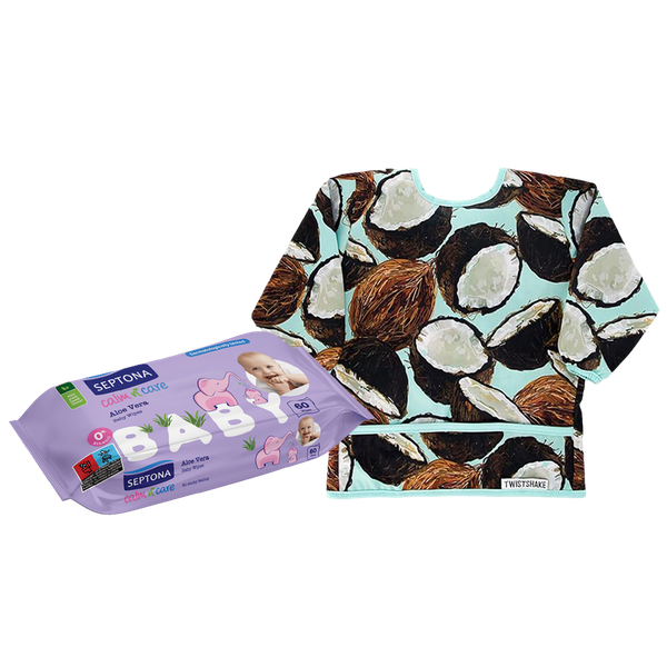Enriched with nurturing ingredients from a protective diaper cream, these wipes are ideal for daily hygiene and skincare for the youngest, usable from the very first day of life. Children's skin, particularly in the first year, is far more delicate than adult skin. The material used to make these wipes is exceptionally soft and skin-friendly, crafted without any plastic - 60 Wipes + Long Sleeve Bib