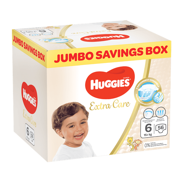 They feature a special triple liner with soft absorbent pads for gentle care and protection of your baby's skin. Additionally, they are made from soft materials that allow the skin to breathe. These diapers also have an expandable waistband for a snug fit, keeping your baby comfortable while crawling, walking, napping, or sleeping at night - 56 Diapers