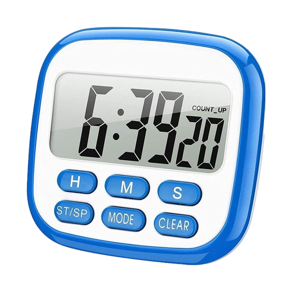 It offers dual functionality with a large LCD display for easy readability. It features countdown and count-up timer modes, an alarm function, and a clock. This device is perfect for managing cooking times and other timed activities in the kitchen.