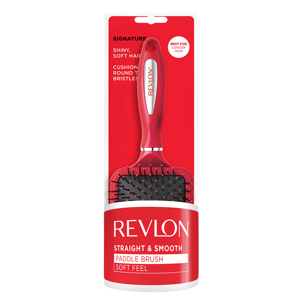 This brush boasts a wide, cushioned base perfect for detangling and smoothing all hair types. The rounded tip bristles massage the scalp gently, promoting healthy hair while providing a sleek, polished look.