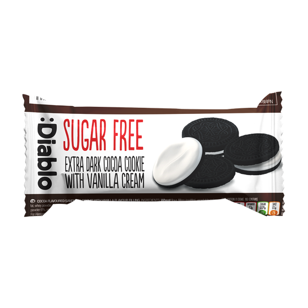 They offer a luxurious and guilt-free treat. These cookies are made with extra dark cocoa and filled with a creamy vanilla center, providing a rich flavor without the sugar - 44 gm